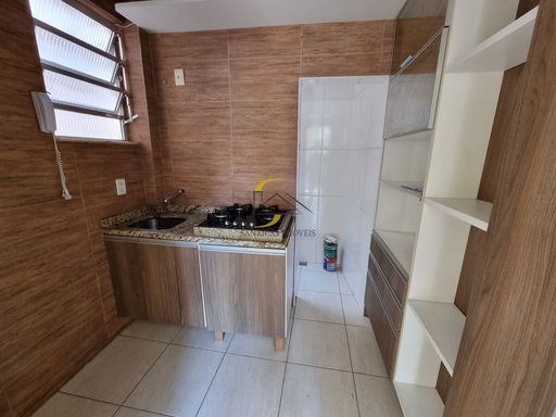 Apartamento de 1 quarto, sala, cozinha, banheiro social e área de serviço.