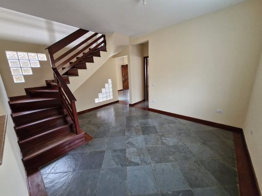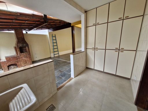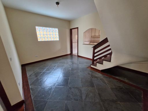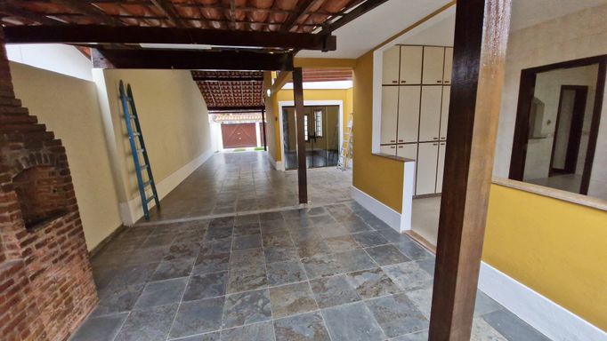 Casa duplex composta por 3 quartos, 2 salas, copa, cozinha, 2 banheiros social, área de serviço, varanda, churrasqueira, quintal e garagem para 3 carros.